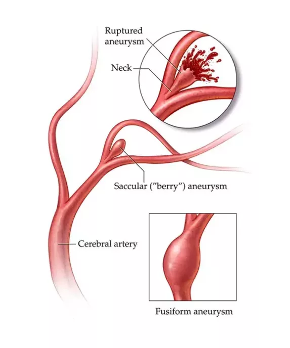 A ballooning or bulge in a brain’s blood vessel is called a brain aneurysm. Sometimes, the condition is called cerebral aneurysm or intracranial aneurysm. In most cases, an aneurysm looks like a berry that hangs on a stem.