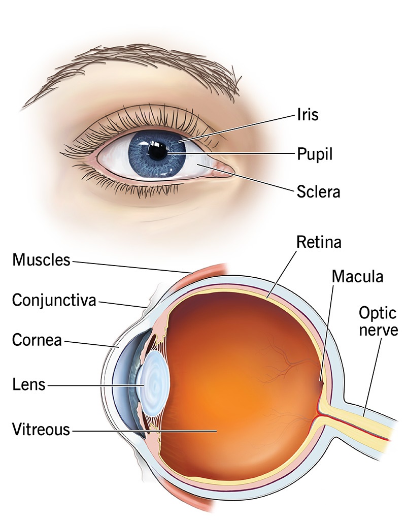 The eyes work by capturing light from the outside world. Hence, eye structure allows light to pass through several clear components including cornea, aqueous humor, lens, and vitreous humor. As a result, these structures adjust how far the light beams travel before coming into focus. Moreover, the focus is required to be exact and if it is not, the image appears blurred.