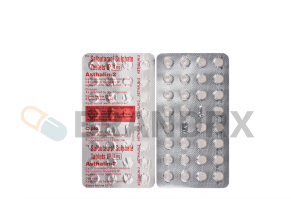 Take the tablet whole by mouth with a glass full of water and avoid other beverages such as alcohol because it may increase the risk of adverse effects. While swallowing, you should not break, chew, or crush the tablet. To get a better effect from Asthalin 2 mg, you should administer the tablet at a fixed time every day. The recommended dose per day (24 hours) is usually one tablet or as directed by your doctor. If you experience nausea or stomach upset, you can administer the tablet with milk or light food.
