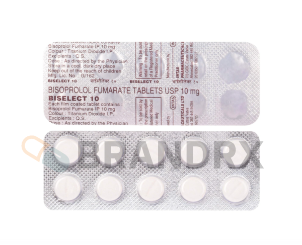 Biselect 10 mg is usually used to treat chronic stable angina, hypertension, and chronic stable heart failure. This drug belongs to a group of medicines called beta-blockers. Bisoprolol is the active ingredient of this medicine but it also contains other inactive ingredients such as titanium dioxide, iron oxides, polysorbate, microcrystalline cellulose, colloidal silicon dioxide, and others. This medication works by slowing the rhythm of the heart. This effect helps to reduce strain on the heart and blood pressure. It is not allowed to use Biselect 10 mg without a doctor’s prescription because it may lead to undesired results.