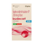Budecort Inhaler 200 mcg is a medication that is usually used to treat some lung diseases such as asthma and chronic obstructive pulmonary disease (COPD). This medication may also be used to relieve certain symptoms (such as trouble breathing, coughing, wheezing, and others). The active ingredient of this medication is Budesonide. It works by relaxing and widening the airways. This effect helps to breathe easier. Budesonide belongs to the class of medicines called corticosteroids. It works by reducing the irritation and swelling (inflammation) of the airways. Do not use Budecort Inhaler 200 mcg without the doctor’s prescription because you may experience undesired results.