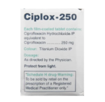 Take the tablet whole by mouth with a glass of water (4 ounces/ 120 mL), preferably on an empty stomach. It is not allowed to administer this medicine with alcoholic drinks because your risk of adverse effects may increase. While swallowing, do not crush, break, or chew the pill because you may notice an unpleasant taste in your mouth. You can take this drug with low-fat food or milk if an upset stomach or nausea occurs. To get a better effect from Ciplox 250 mg, it is advised to administer the tablet at a fixed time every day.