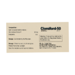 Take the tablet whole by mouth with or without food. Use a glass of water to swallow the tablet and avoid other drinks such as alcohol because your risk of negative effects may increase. While swallowing, do not crush, break, or chew the tablet because you may notice an unpleasant taste in your mouth. The recommended dose per day (24 hours) is usually 1-2 tablets or as directed by your physician. Furthermore, it is important to follow the dosing schedule exactly as prescribed by a doctor, to get the most benefit from Clomiford 50 mg. To decrease the risk of nausea or stomach upset, you can administer this product with light food or milk.