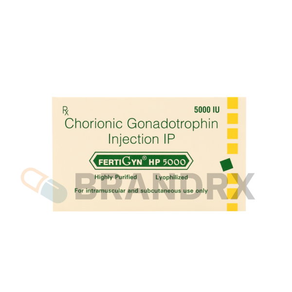 An injection that is used to treat infertility in women. It is also beneficial in the treatment of hypogonadism (delayed puberty, low sperm count). The active ingredient of this medication is Human Chorionic Gonadotropin (hCG). Nonetheless, it contains other inactive ingredients such as hydrochloric acid, water, benzyl alcohol, and others. Fertigyn 5000 IU belongs to a group of medications called Gonadotropins. Do not administer this injection alone at home.