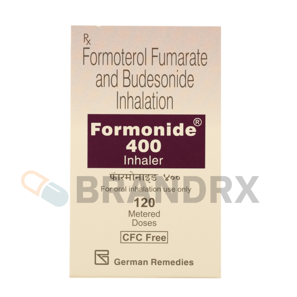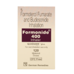Formonide Forte Inhaler 400 mcg is a medication that is usually used to treat some lung diseases such as asthma and chronic obstructive pulmonary disease (COPD). This medication may also be used to relieve certain symptoms (such as trouble breathing, coughing, wheezing, and others). The active ingredients of this medication are Budesonide and Formoterol. Formoterol belongs to the group of medications called long-acting beta-agonists. It works by relaxing and widening the airways. This effect helps to breathe easier. Budesonide belongs to the class of medicines called corticosteroids. It works by reducing the irritation and swelling (inflammation) of the airways. Do not use Formonide Forte Inhaler 400 mcg without the doctor’s prescription because you may experience undesired results.