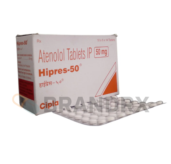 Hipres 50 mg is a drug that is commonly used in patients who are suffering from high blood pressure (hypertension). It helps to decrease the risk of strokes, myocardial infarctions, kidney problems, and others. Healthcare providers may also prescribe this medication to treat angina (chest pain) and other conditions not listed in this document. Hipres 50 mg contains Atenolol as an active ingredient. Despite that, it also contains other inactive ingredients such as sodium lauryl sulfate, sodium starch glycolate, microcrystalline cellulose, colloidal silicon dioxide, and others. Atenolol belongs to the class of medications called beta-blockers.