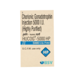 An injection that is used to treat infertility in women. It is also beneficial in the treatment of hypogonadism (delayed puberty, low sperm count). The active ingredient of this medication is Human Chorionic Gonadotropin (hCG). Nonetheless, it contains other inactive ingredients such as hydrochloric acid, water, benzyl alcohol, and others. Hucog HP 5000 IU belongs to a group of medications called Gonadotropins. Do not administer this injection alone at home.