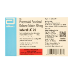 A tablet that is commonly used to reduce anxiety and relieve tremors. In any case, physicians may prescribe Inderal LA 20 mg to prevent heart-related chest pain (angina), bleeding in the stomach due to hypertension in the liver, migraines, and others. This medication works by blocking a certain natural substance in the body (epinephrine), which affects blood vessels and the heart. The active ingredient is Propranolol. Nonetheless, it also contains other inactive ingredients such as magnesium stearate, microcrystalline cellulose, stearic acid, colloidal silicon dioxide, and others. Inderal LA 20 mg belongs to a group of drugs called beta-blockers.