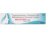 This cream contains Hydroquinone, Tretinoin, and Mometasone Furoate as active ingredients, which are used in patients who are suffering from highly pigmented skin (such as age spots, freckles, or acne scars). It works by stopping the production of the skin pigment called melanin. Nonetheless, it contains other inactive ingredients such as propylparaben, purified water, sodium metabisulfite, stearic acid, stearyl alcohol, magnesium aluminum silicate, and others. Melacare Forte Cream 4%/0.025%/0.1% belongs to a group of medicines called Depigmenting Agents. Do not use this cream without a doctor’s prescription because you may notice unpleasant results.