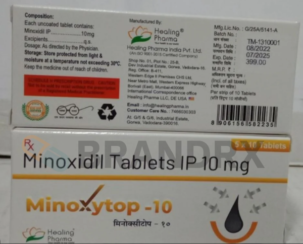 The manufacturer of Minoxytop 10 mg is Healing Pharma.