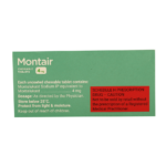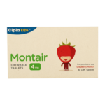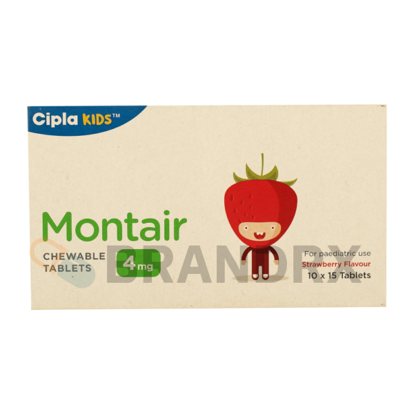 Montair Chewable 4 mg is a medicine that is usually used to prevent and control some symptoms (such as coughing, wheezing, and trouble breathing) due to asthma. This medication may help to prevent bronchospasm and breathing problems during exercises. Physicians may also prescribe this medicine to relieve symptoms of allergic rhinitis (such as stuffy, itchy, runny, and sneezing nose) and hay fever. If you are experiencing breathing problems or an asthma attack, do not use this medicine. In such cases, it is recommended to use a quick-relief inhaler such as albuterol. While the active ingredient is Montelukast, it also contains other inactive ingredients such as hydroxypropyl cellulose, croscarmellose sodium, magnesium stearate, aspartame, mannitol, and others. Montair Chewable 4 mg belongs to the group of medications called leukotriene receptor antagonists (LTRAs). Montelukast works by blocking the production of a certain natural substance that may worsen or cause asthma or allergies. Therefore, by decreasing the inflammation (swelling) in the airways, it helps to breathe more easily.