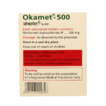 Administer the pill whole by mouth with or without food and with a glass full of water. It is not allowed to use other beverages such as alcohol because it may increase the risk of side effects. Do not chew, crush, or break the tablet while swallowing. To get the most benefit from Okamet 500 mg, it is advised to take the tablet at a fixed time every day. Usually, it is recommended to administer the pill on an empty stomach but if you experience stomach upset or nausea, you can take the tablet with milk or light food. One tablet per day is usually the recommended dose or as directed by your physician.