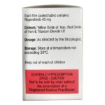 This medicine is usually used in patients who are suffering from colon and rectum cancer. However, physicians may also prescribe this medicine to treat certain cancers of the digestive system (gastrointestinal stromal tumor) and other diseases not listed in this article. Regonat 40 mg belongs to a group of medicines called kinase inhibitors. Regonat 40 mg contains Regorafenib as an active ingredient. Nonetheless, it also contains other inactive ingredients such as magnesium stearate, povidone, colloidal silicon dioxide, microcrystalline cellulose, and others. You should not use this product without the physician’s prescription because it may lead to unwanted results.