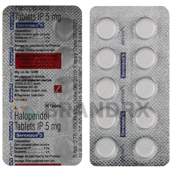 A medicine used to treat schizophrenia. This is a mental disorder in which an individual develops unreal thoughts and behavior. Serenace 5 mg works by stopping the action of a chemical messenger in the brand that affects mood and thoughts. While the active ingredient of this medication is Haloperidol, it also contains other inactive ingredients such as magnesium stearate, microcrystalline cellulose, pregelatinized starch, and others. Haloperidol belongs to a group of drugs called antipsychotic agents. Using this medicine without a doctor’s prescription is not allowed. Otherwise, you may experience unwanted results such as severe side effects.