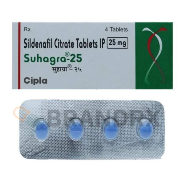 Suhagra 25 mg is a tablet that is designed to treat erectile dysfunction (ED) or impotence in men. These pills are used to get harder and stronger erections. While Sildenafil Citrate is the active ingredient, Suhagra 25 mg also contains other inactive ingredients such as microcrystalline cellulose, lactose, magnesium stearate, and others. Sildenafil Citrate belongs to a class of medicines called phosphodiesterase type-5 (PDE-5) inhibitors.