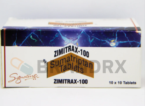 A tablet that is used to treat migraines. It also may be used to relieve pain, headaches, and other migraine symptoms such as sensitivity to sound or light, vomiting, nausea, and others. Zimitrax 100 mg may decrease your need for other pain medicines. The active ingredient of this medication is Sumatriptan Succinate. It also contains other inactive ingredients such as lactose anhydrous, croscarmellose sodium, magnesium stearate, microcrystalline cellulose, and others. Zimitrax 100 mg belongs to the group of medicines called triptans. This medication may also help to relieve pain by affecting some nerves in the brain. Sumatriptan works by narrowing the blood vessels in the brain, which helps to relieve migraine symptoms. Zimitrax 100 mg does not decrease how often you get migraine attacks or future migraines.